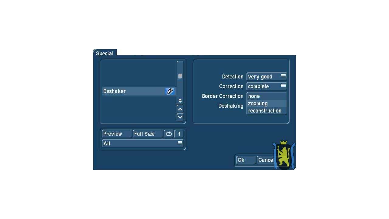 Deshaker ist in der Lage, unerwünschtes wackeln der Kamera in horizontaler und vertikaler Richtung möglichst weich auszugleichen. Damit können unruhige aber dringend benötigte Szenen, welche sich nicht mehr nach-drehen lassen, meist gerettet werden.
